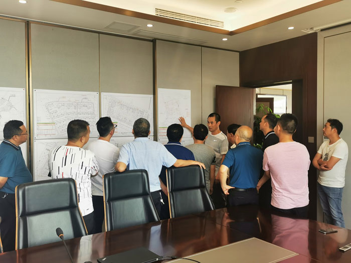 董事長李海首先為調研小組介紹各個項目的標高和地塊高差,海成是如何在產品研發(fā)和工程細節(jié)上克服巨大的高差,因地制宜開發(fā);展示了通過高清攝像機,實時查看各個在建工程的情況,調研小組對海成在項目安全文明施工、工程質量的嚴謹頻頻點贊。