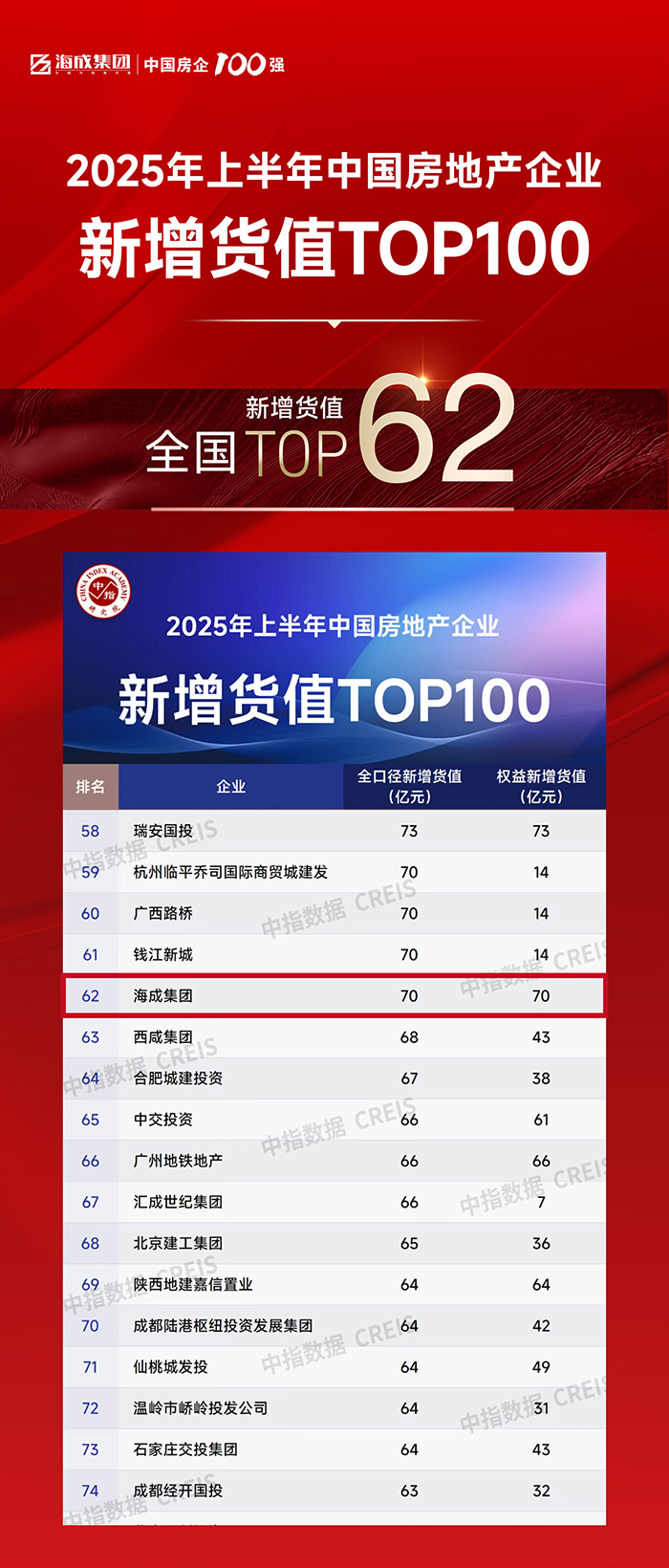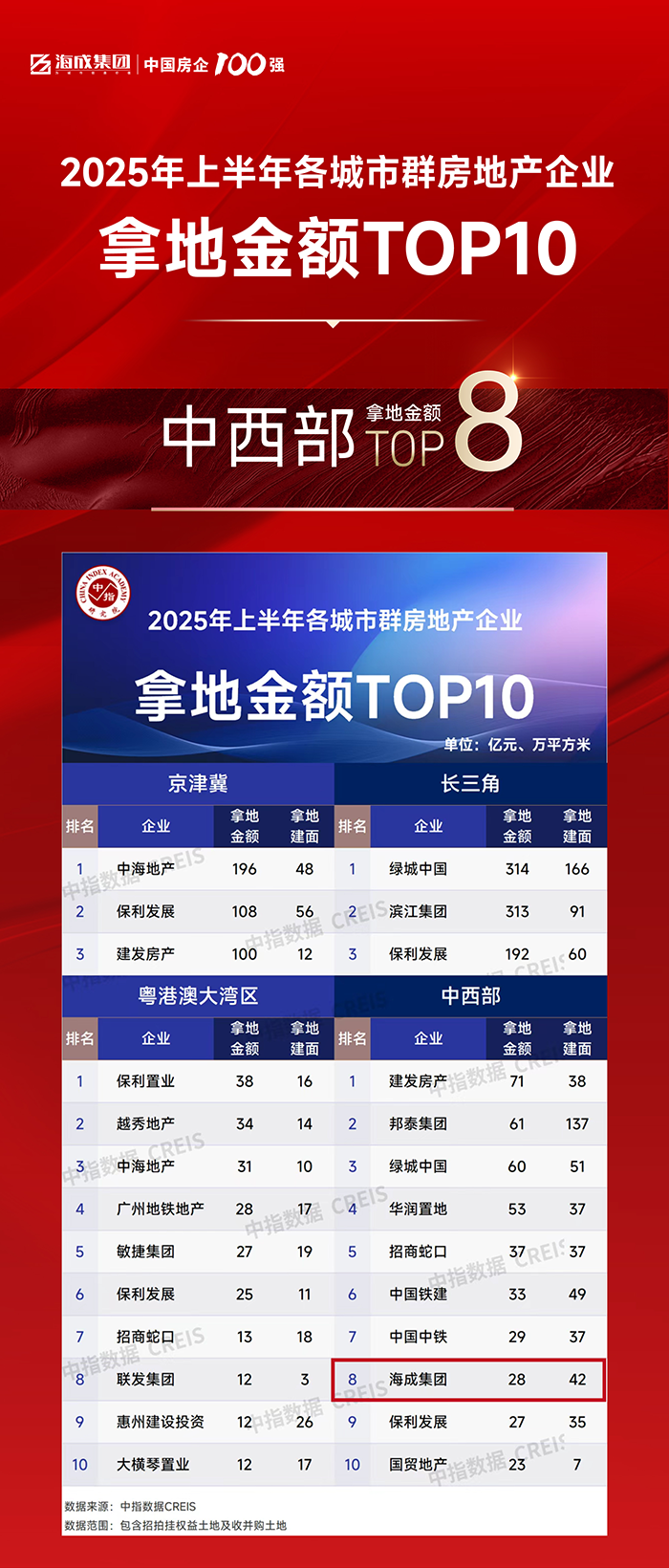 致遠篤行 | 海成集團位居全國上半年房企拿地金額TOP28 & 拿地面積TOP42